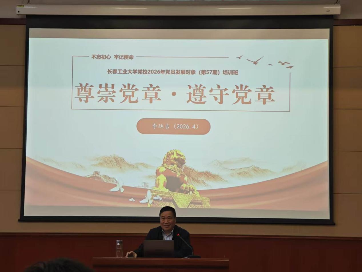 (通讯员 王颖群)4月25日,长春工业大学党校2026年(总第57期)发展对象培训班开班。校关工委主任李廷吉受邀为全体学员作专题授课,主题为“尊崇党章,遵守党章”。